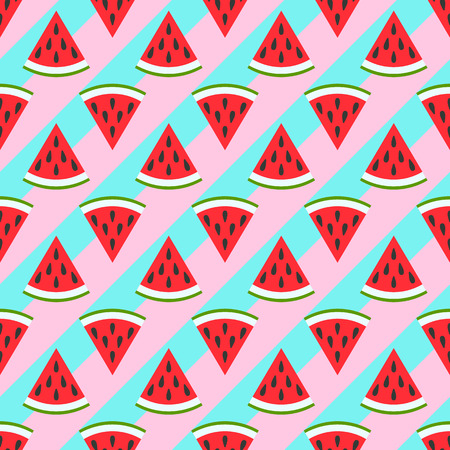 ピンクのスイカのスライスとシームレスな背景は かわいいフルーツ パターン 夏食品ベクトル イラスト テキスタイル 壁紙 Web 生地 装飾のデザイン のイラスト素材 ベクタ Image